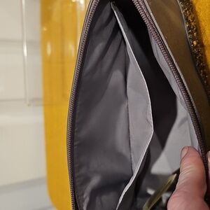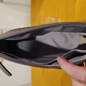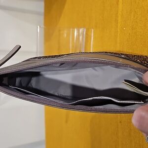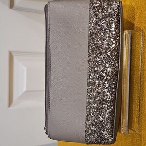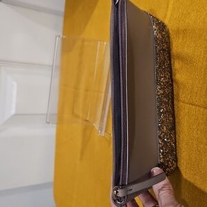 From the All that Glitters Collection. This adorable cosmetic case can also be used as a clutch. Taupe and lots of sparkle glitter.