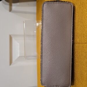 Zip closure, Interior slide pocket, Gold foil embossed KSNY signature