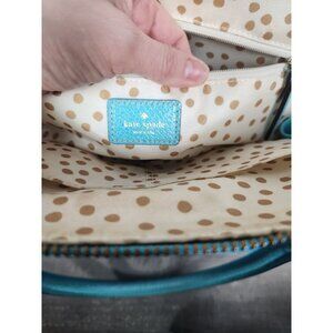 Kate Spade Maeda Wellesley Windsor Rolled Top Handle Satchel In Turquoise is in gently used condition.