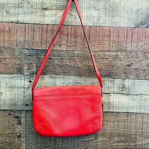 A two-way zipper travels the edge of the fold-over flap topping a leather crossbody bag.