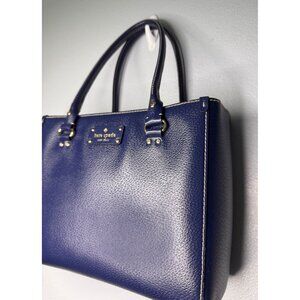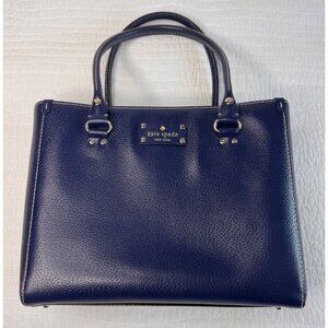 Kate Spade Navy Blue Wellesley Quinn Classic Leather Tote Handbag Office