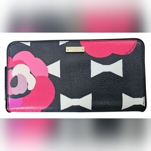 New in box! Stylish Kate Spade New York storybook lining wallet featuring a chic black, white, red, and pink design. Perfect for adding a pop of color to your accessories collection. Color may vary due to camera lighting. 8" x 4" x 1"