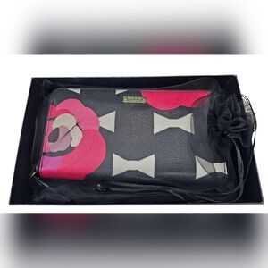 Kate Spade New York Black and Red Long Wallet, story book lining, New In Box.