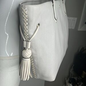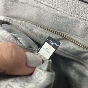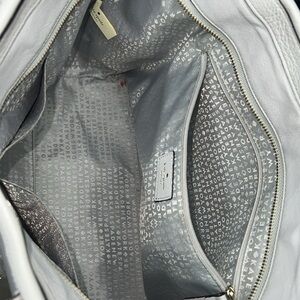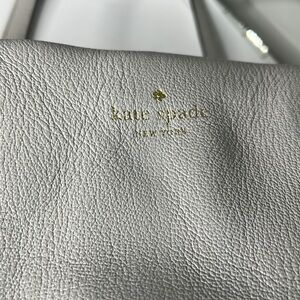 This is a wonderful Kate Spade New York Pratt Street Brandice Zip Tote Gray Leather White Stitching. Excellent pre owned condition. Minor scuffs, minor wear to the corners and a scratch at the top rim - all can be touched up at a shoe repair. No odors. Overall clean, no odors. 18” x 10” x 6” with 10” strap drops. Interior is clean with a small red ink spot in the very bottom corner. Interior wall zipper and two slip in compartments. Zip works perfectly.