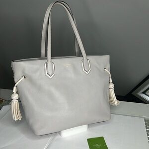 Kate Spade New York Pratt Street Brandice Zip Tote Gray Leather White Stitching