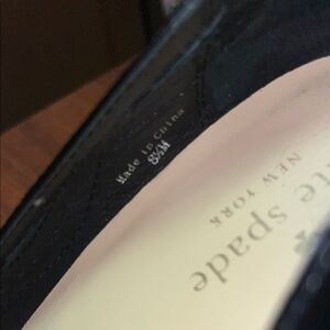 Experience timeless elegance with these black super feminine 3 inch heels from Kate Spade, crafted in glossy patent leather. Their minimalist design ensures versatility, making them ideal for both professional and formal settings. Enjoy the perfect blend of comfort and style with these sophisticated loafers. With cute coquette cut out detailing around the border and a cute sleek bow tied at the center front of the heel. The cutest closed toed heels I’ve ever seen.