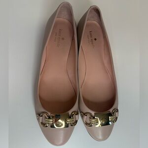 Kate Spade Phoebe Blush Pink Leather Flats with Gold Buckle Preppy Size 9.5M