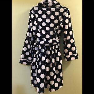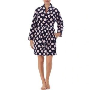Kate spade plush polka dot robe in Excellent Condition worn twice, Piping trim Plush self and interior Interior ties Two pockets Matching removable belt 100% polyester, no trades