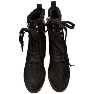 Kate Spade Raegan Shearling Lug Sole Lace-Up Suede Boots in Black NWOB Size 5B