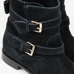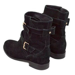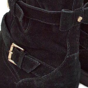 Kate Spade Sabina Black Suede Buckle & Bow Boots, EUC. No visible wear.