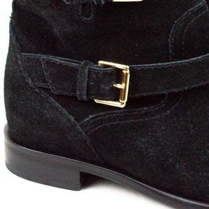 Kate Spade Sabina Black Suede Buckle & Bow Boots