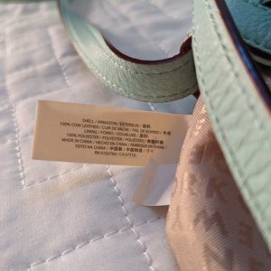 Pebbled cowhide soft leather. Gold toned hardware detail on tassels, long adjustable strap, interior slide pocket. Signature lining. Gold foil printed Kate Spade New York logo on front.