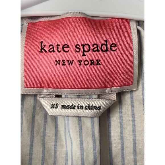 Kate Spade XS Blue Stripe Micro Heart Mini Shirt Dress Ruffle Button RS10275