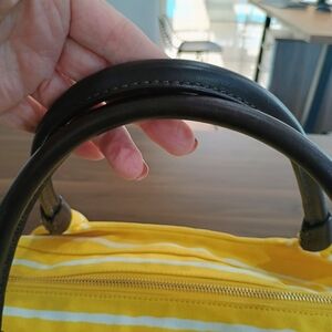 Brighten your day with this stylish Kate Spade yellow striped bag. Perfect for any occasion.