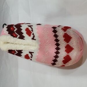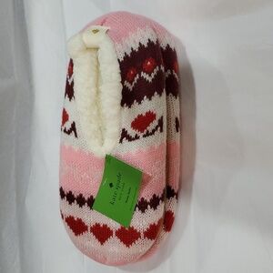 Kate Spade pink red argyle look shearling lined footlet knit house home socks size One Size new