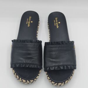Kate Spade New York Women's Zahara Black Leather Ruffle Slide Sandal