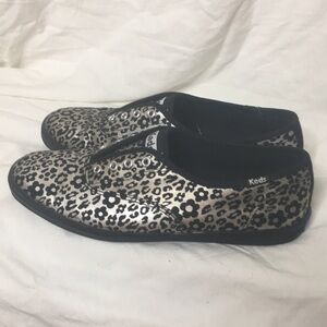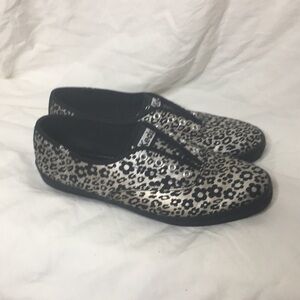 Keds platinum with black flower print, black trim, slip on with Faux laces,size 7.5 NWOB never worn but just adorable!!