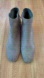 Beautiful taupe faux suede boots with inside zippers. Heels are 2” high. Shiny silver accent around base. New without tags.