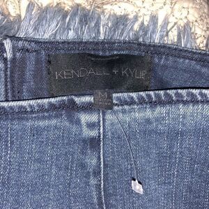 A new-and-now take on the denim mini, Kendall + Kylie's raw-edge skirt features a frayed, asymmetric hemline and lightly faded, true-blue wash. Pair with peep-toe ankle booties and a coordinating denim crop top to up your outfit's cool factor. Asymmetric raw-edge hem, exposed back zip closure. Approx. 16" from back of waist to hem, waist: 16” measured flat. Cotton/spandex. Machine wash. Brand new never worn