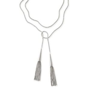 Kendra Scott Phara necklace Featuring fringe tassels and a long metallic chain this versatile necklace can be worn several ways Perfect worn layered or on its own Rhodium plated over brass 48.5” length