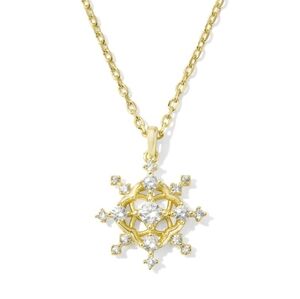 white crystal gold holiday necklace, gold pendant white cz snowflake, short gold crystal snowflake necklace, elegant gold snowflake pendant, Kendra Scott holiday necklace snowflake, Kendra Scott short gold pendant necklace