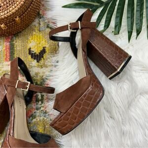 Kenneth Cole Brown Chunky Platform Dolly Suede & Croc Embossed Leather Sandal 8