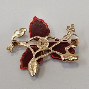 Kenneth Cole Red Mesh Poinsettia Brooch Pin Holiday Christmas Enamel Rhinestone