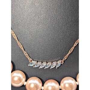 Kenneth J. Lane 12 mm Pink Faux Pearl & Floating CZ Rose Tone Necklaces