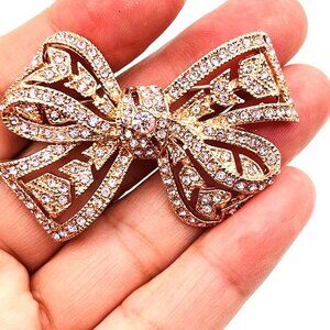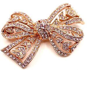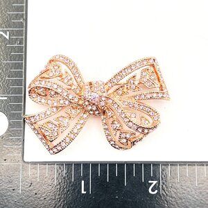 Kenneth Jay Lane KJL Rose Gold Tone Pink Pave Rhinestone Bow Brooch 2"