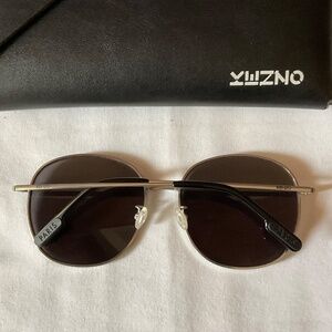 Kenzo Paris Square Sunglasses, silver tone metal frame, black lenses