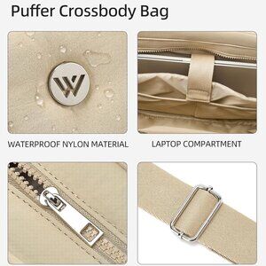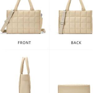 Features: Crafted from top-quality taslon nylon with a plush, padded feel, this tote is super soft, waterproof, and dirt-repellent. Measuring 16"x11"x4.5" and weighing just 1.3 lbs, it comfortably holds your laptop, water bottles, cosmetics, and more. It features a large zipper compartment, a dedicated laptop sleeve, mesh and small organizing pockets, plus an inside pocket for bottles or umbrellas. Comes with both a cushioned handle and an adjustable crossbody strap, so you can wear it however you like. Stylish and flexible, perfect for work, shopping, travel, gym, or casual days.