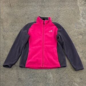 Keep your child warm and stylish with this cozy pink and gray fleece jacket. Perfect for outdoor adventures.