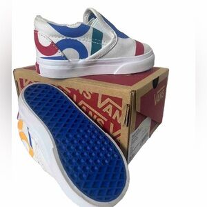 Kids unisex size 5 Vans Deck Club classic slip-on, multicolored sneaker
