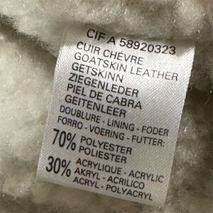 • Material: Shell – 100% Goatskin Leather; Lining – 70% Polyester, 30% Acrylic