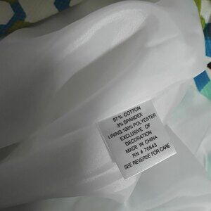 This fun throwback to the 60's vibe dress is just too cute!Various hexagon design in greens, blues, browns and yellow.This dress features a hidden back zipper (18"long), A brown ribbon belt