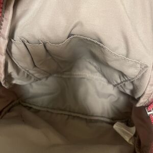 Nice backpack. In good shape no major issues. Original metal gorilla keychain attached. Double zipper on the main compartment single zipper on the smaller front compartment. Inside the large compartment there is a smaller zippered space as well as space for pencils and phone. Fully washable. Some marks on the inside some light marks on the exterior. Adjustable shoulder straps