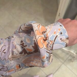 Super chic and comfortable button down blouse from Kittenish. Worn twice, just trying to simplify my work wardrobe. Runs a little big as seen in the pic with it untucked, but can easily be tucked into trousers without much hassle at all. Material is very breathable and comfortable, no rips or stains or visible wear besides the little thread as seen on the wrist button pic. Smoke free home!