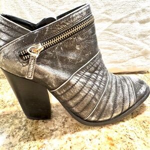 Klub Nico - Black and Silver Leather Booties - Women's Size 35.6 (6.5). Handmade in Brazil. Super fun and funky zip bootie. Excellent condition. Very comfortable.