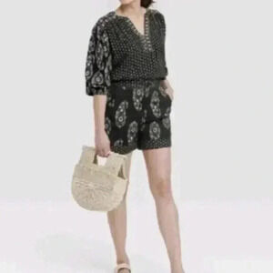 Knox Rose High-Rise Relaxed Fit Pull-On Shorts Black Paisley size XXL