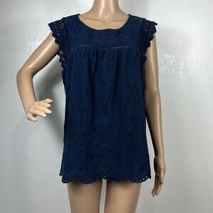 Knox Rose Navy Blue Sleeveless Eyelet Top