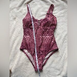 Kona Sol Boho Medallion Printed Pink Maroon One-Piece Swimsuit