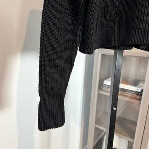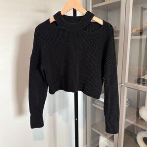 Ksubi Black Destroy Crop Sweater Rib-Knit Cutout Crewneck Distressed Size XS