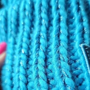 Kurt GeigerWomen's Blue Metallic Cable Knit Beanie NWT