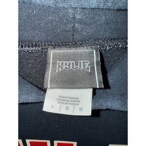 Kylie Jenner tour hoodie in black, featuring bold “KYLIE” graphic across the chest in red gothic lettering. Classic pullover fit with kangaroo pocket and drawstring hood.