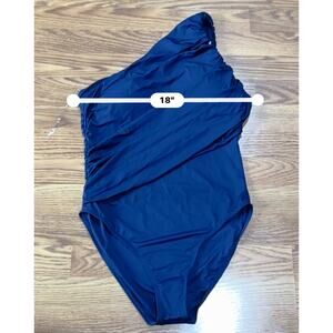 LA BLANCA Island Goddess Shirred One Shoulder One Piece - Indigo size 16