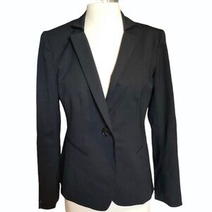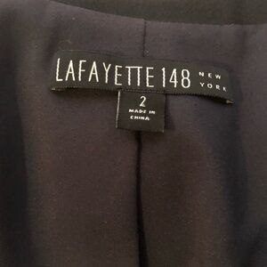 Lafayette 148 Classic Black virgin wool blazer. One button closure. Fully lined. Faux pockets. Material 96% virgin wool 4% elastane. Measurements: Length approx 24”, Bust from armpit to armpit approx 18”.