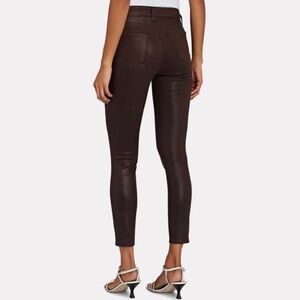 Margot high-rise skinny jeans in cocoa denim wash and sleek coating.