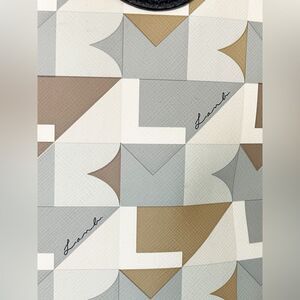 Rare and collectible!  I’m obsessed with this bag!  It’s an extra large bowling bag shape style.  Cool geometric graphic and gold hardware.  Black leather detail.  Beautiful!  Excellent vintage condition.  Questions? Leave a comment below!