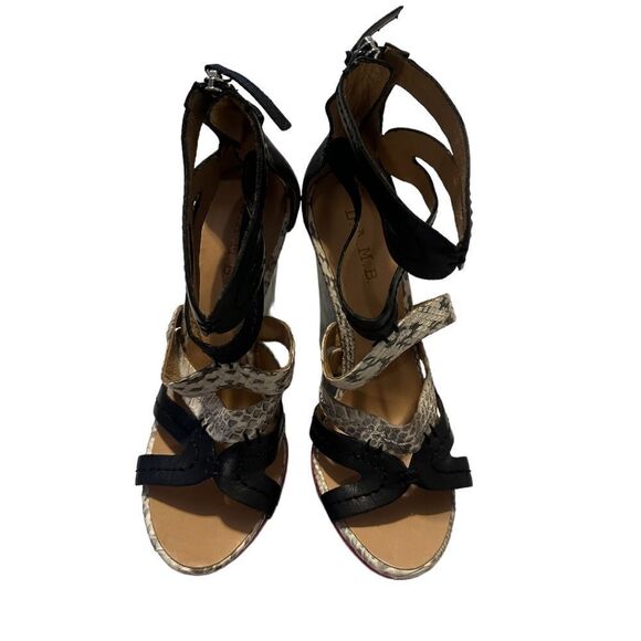 Widely recognized for her eclectic personal style and natural elegance, Gwen Stefani created L.A.M.B. (Love Angel Music Baby) a beautiful, timeless, crazy-fun collection of clothing and shoes based on Stefani's personal style. These shoes feature a fun, exotic look with hot pink, snake skin & black accents. Playful and fun, the sky high wedge style platform shoes have a back zipper closure. 100% Leather straps; man made sole.