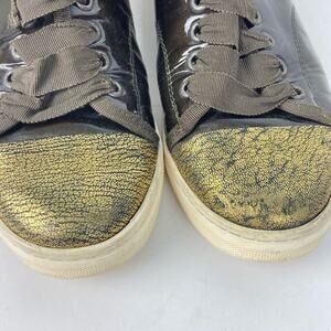LANVIN PARIS Leather Patent Sneakers Brown/Gold Crackel EU 36/US 6